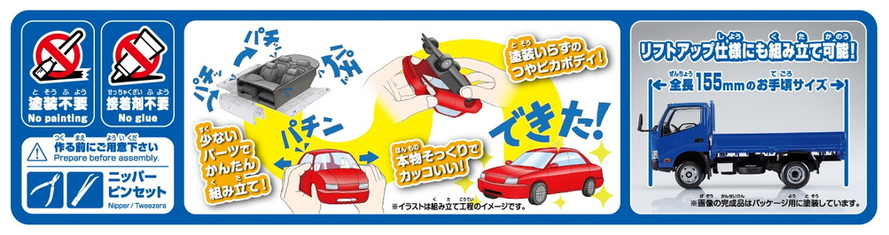 ボディ色をプラスチック材料の着色で再現する事により、塗装不要となりました。