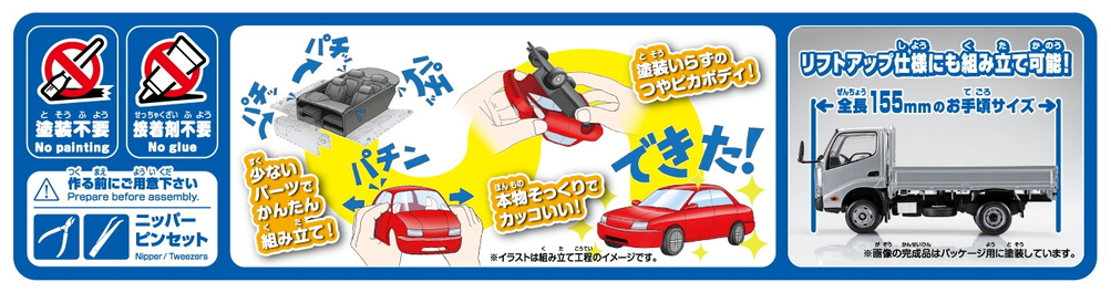 ボディ色をプラスチック材料の着色で再現する事により、塗装不要となりました。